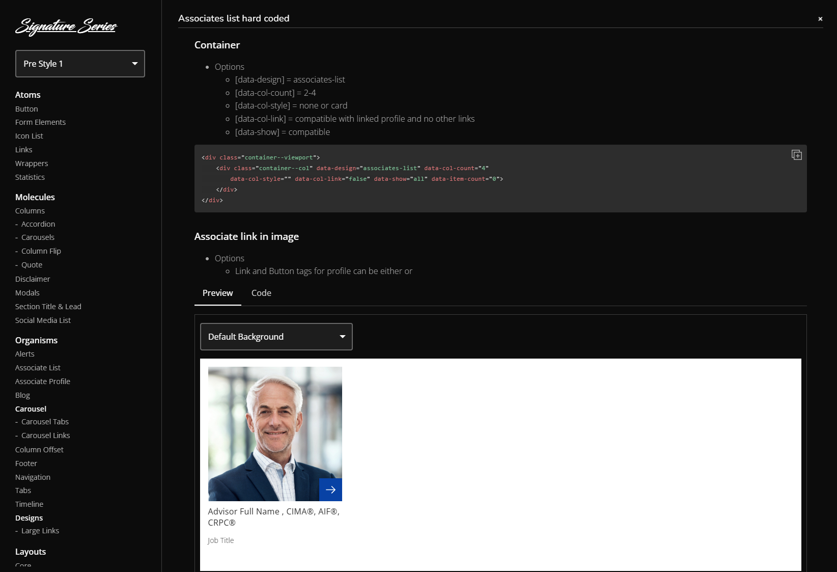 With a competent based system, it's easy to move items and sections around to build the site of our advisors needs. Documentation with previews and code snippets ready to copy and paste streamlined building for the team.
