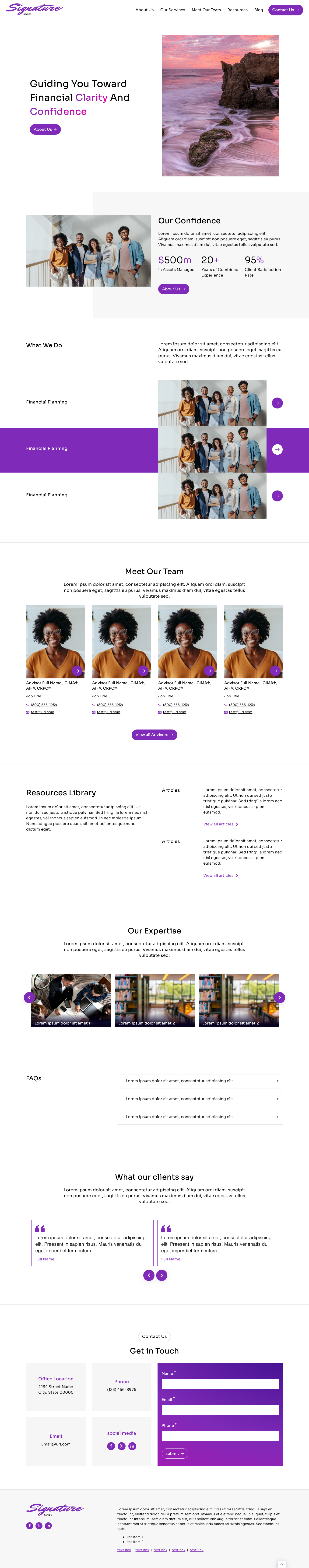 Every client is different, so we needed to provide a solution that give each site an individual feel while still allowing for a fast and simple setup. We created several different themes to make for a great starting point, allowing for quicker turn around times while still giving advisors a unique look and feel.