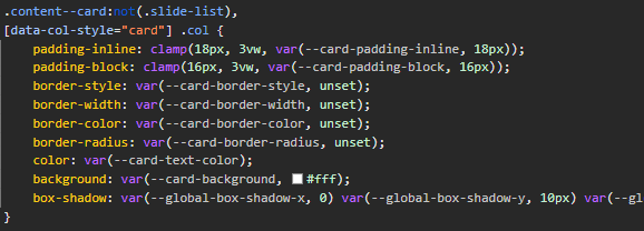 After theme selections, items such as colors, typography, layout spacing, and common styling is easily set up with global variables and consistent code standards.