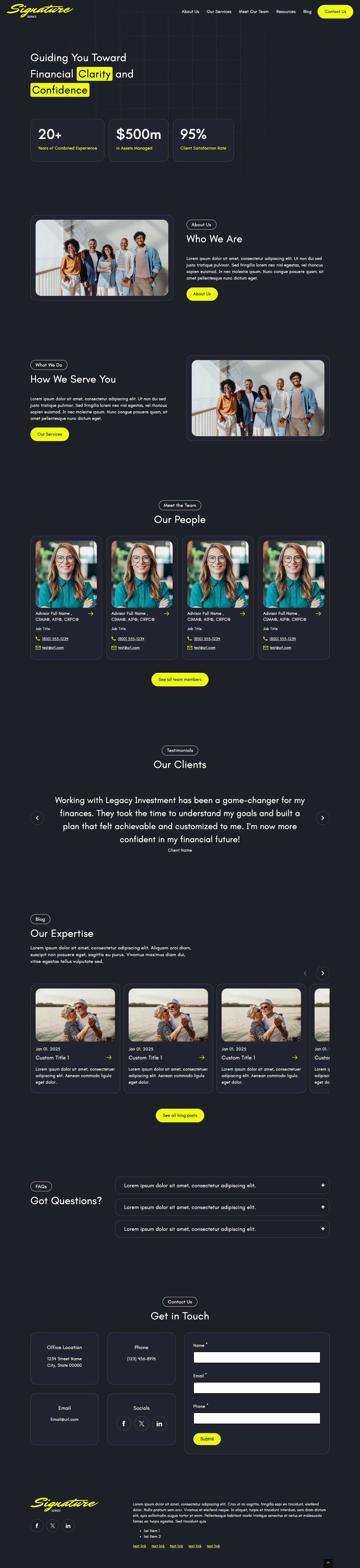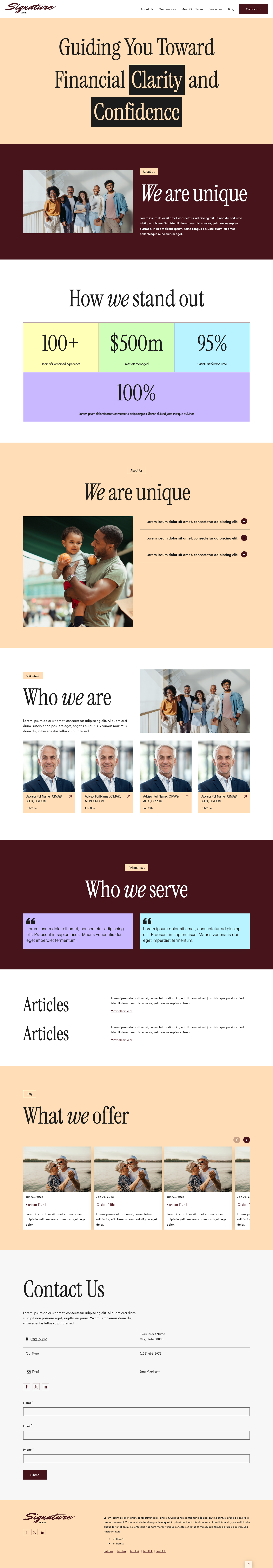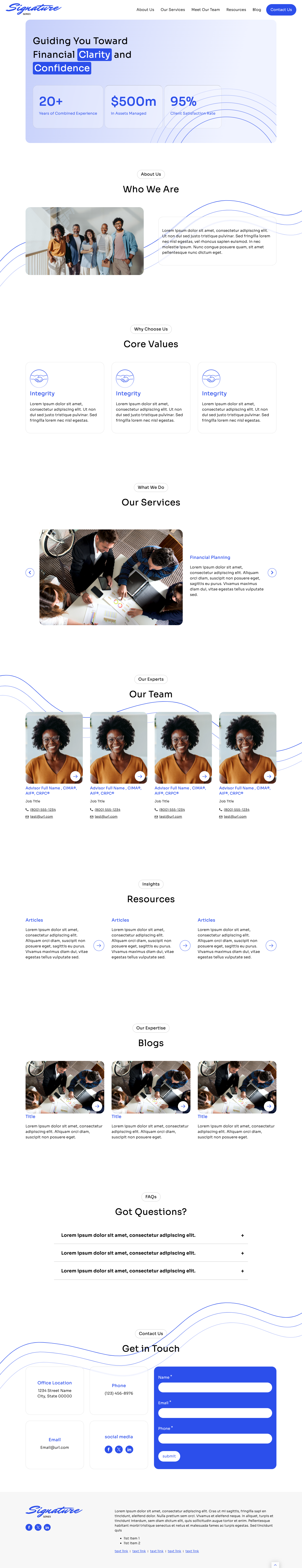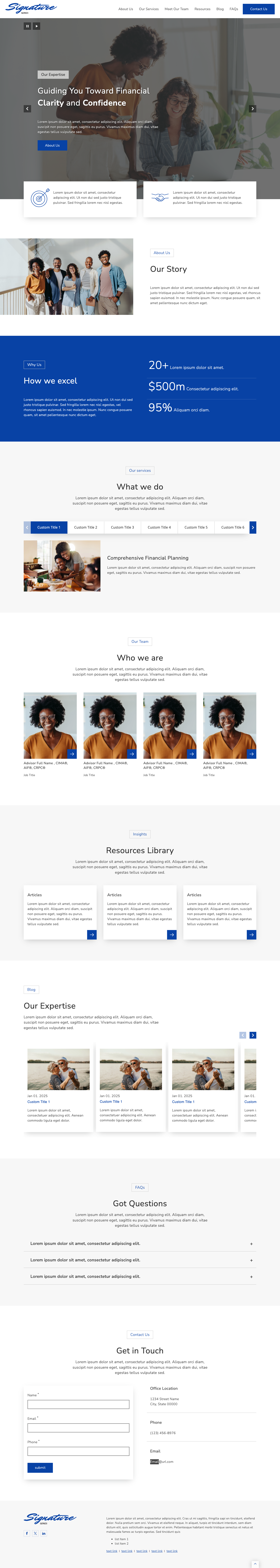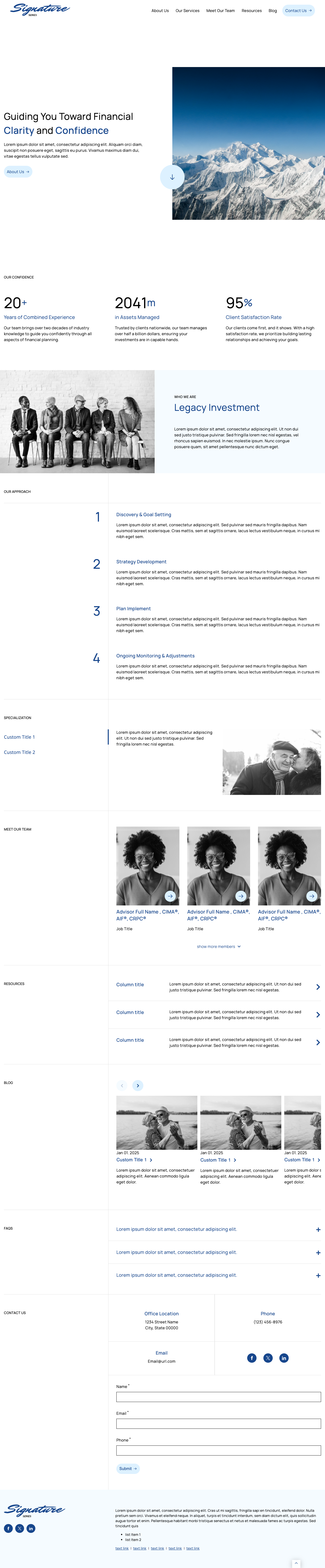 Every client is different, so we needed to provide a solution that give each site an individual feel while still allowing for a fast and simple setup. We created several different themes to make for a great starting point, allowing for quicker turn around times while still giving advisors a unique look and feel.